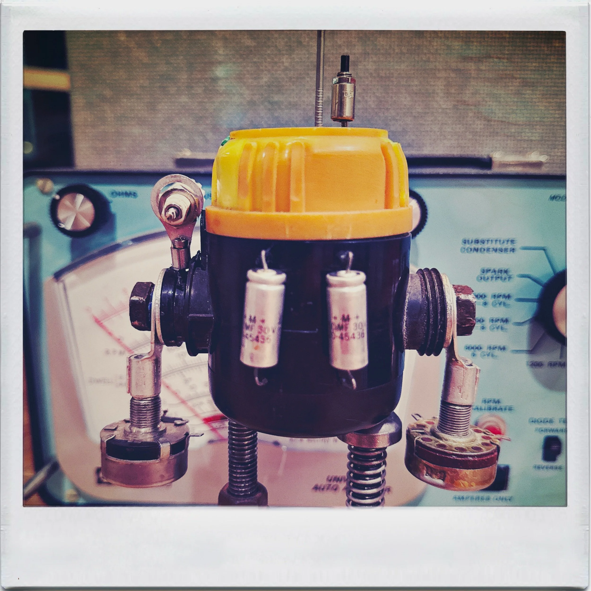 Forged in the quiet hum of the workshop, the TR-9 Volt Sentinel stands as a post-industrial guardian of the R3BOTS Field Ops. Built from salvaged electrical components and vintage hardware, this 9-inch unit carries the marks of its past — transformer core, heavy steel legs, and bolts that once powered forgotten machines.