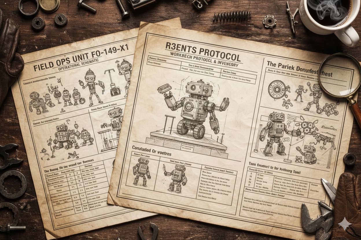 A R3BOT isn’t finished until it has been documented. Once the final bolt is tightened, each unit is assigned a unique Archive Number and a personality profile based on its components. We hand-stamp the Spec Cards, certifying that this specific configuration of history will never be replicated. It leaves the workbench not as a product, but as a permanent resident of the R3BOT lineage.